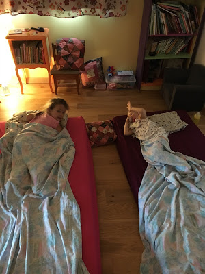 Et ce soir, Lucie a invité une copine à dormir à la maison pour la première fois ! C’est sa copine Jeanne, plus jeune qu’elle (elle vient d’avoir 3 ans), mais plus aventureuse qui inaugure donc les soirées pyjamas ! (Lucie n’est pas du tout prête encore à aller dormir chez elle : “Maman, quand j’irai dormir chez Jeanne, tu viendras aussi ?”)