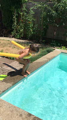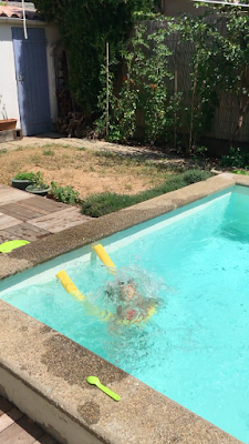 J’ai fait faire à Lucie 3 cours de piscine ces deux dernières semaines, et ça a été catastrophique… Elle a pleuré du début à la fin, de peur sans doute. Elle ne veut pas mettre la tête sous l’eau, mais personne ne l’y a obligée, donc on ne s’explique pas trop ses craintes.