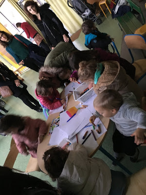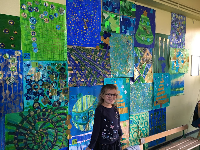 On a pu prendre le temps d’admirer une oeuvre commune des moyens de la classe de Lucie, et le calendrier de l’avent géant qui débutera lundi !