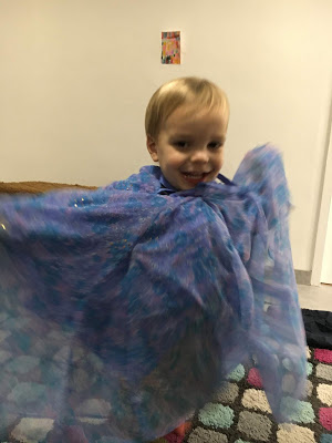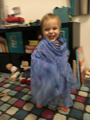 Et ce soir, après que Lucie l’ait enlevée pour se mettre en pyjama, il a demandé à mettre la robe de princesse de Lucie 😉