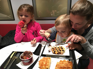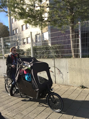 et balade en ville (pour aller manger glaces et gaufres) en vélo cargo. Agathe s’est même essayée à la conduite.