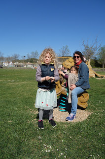 Nous sommes allés voir nos amis avec qui nous avions prévu un picnic… Le temps, et surtout la température n’étaient pas tels qu’espérés, on a donc pris notre picnic dans leur salon, avant d’aller profiter du soleil enfin décidé à nous réchauffer !