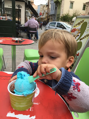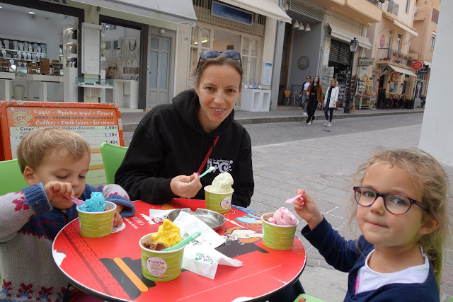 Nous avons quitté Heraklion dès le mardi matin suivant, en direction de Rethimno. Premier arrêt à la plage à Stavromenos, puis après s’être installés dans notre airbnb, petite balade et glace sur le front de mer de Rethimno.