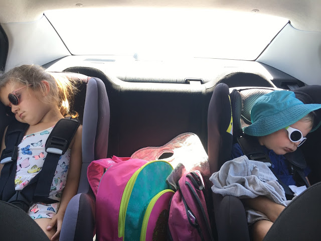 En arrivant chez le loueur de voiture, les 2 enfants étaient profondément endormis. Nous avons pu les laisser dormir 1h, cela a sans doute sauvé le voyage…