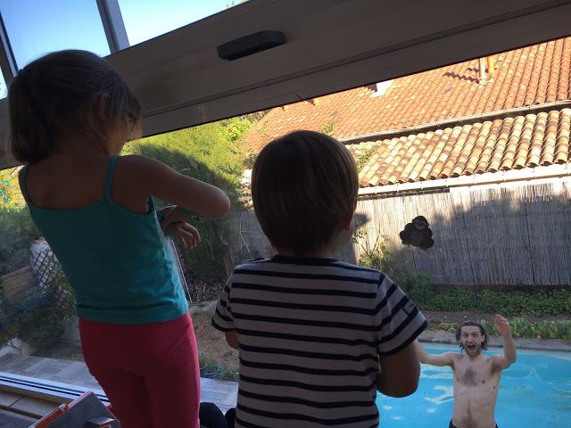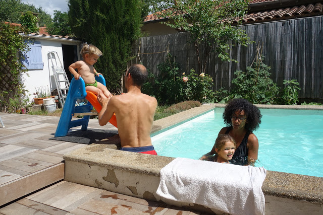 Dalal et Victor sont passés chez nous cette semaine. Thomas, lui, était à Neuchâtel quelques jours. Les enfants ont spécialement aimé les pitreries de Victor au bord de la piscine, et ils ont bien profité de Dalal, qui a même gardé Émile plusieurs fois pour nous dépanner (crèche fermée, quelques belles averses).
