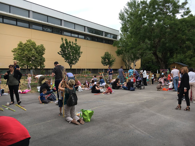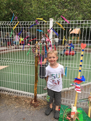 Le thème de la fête de cette année était les arbres, ou plutôt les bizarbres. Comme l’année dernière, nous avons été mis à contribution pour le chantier : chaque enfant, entouré de sa famille a construit un arbre, avec du matériel fourni par l’école et/ou amené par la famille. J’étais seule avec Émile et Lucie, donc notre construction de cette année a une certaine allure !