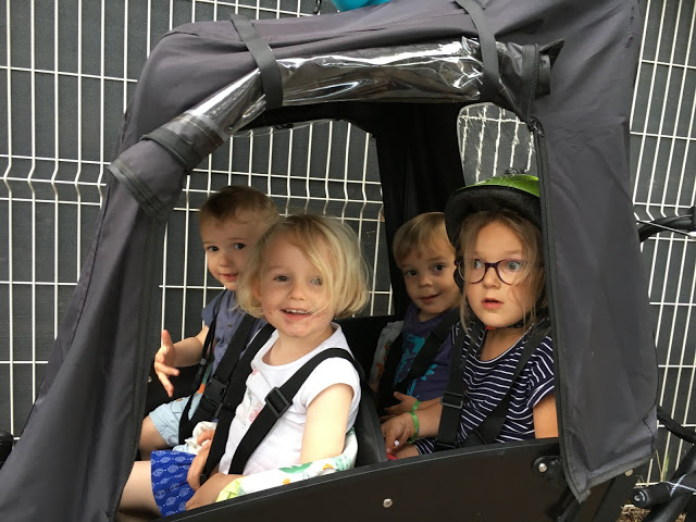 La soirée s’est finie avec un picnic dans la cour de l’école. Il y a eu de l’ambiance pour le retour, 4 dans le cargo, la séparation et le coucher plus difficile. Et demain, école…