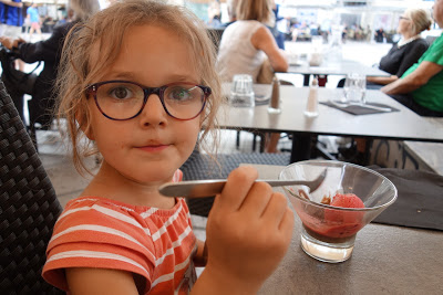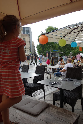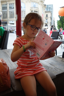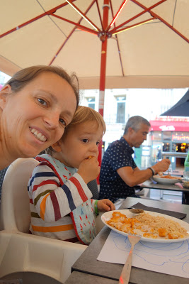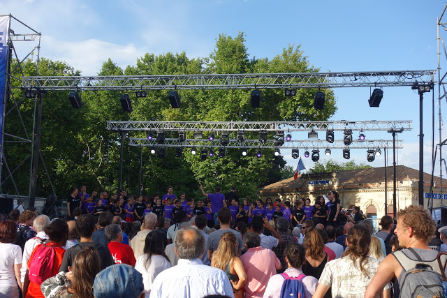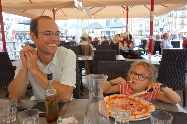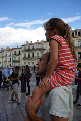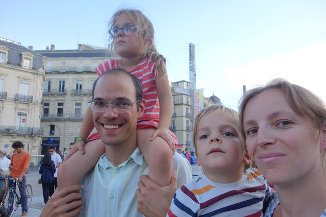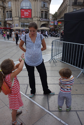 Pour la fête de la musique, nous sommes allés faire un tour en ville. Avant 19h, il n’y avait pas grand chose à voir (ou plutôt à écouter 😉 ). Nous sommes allés manger une pizza chez pizza papa, et depuis notre table nous pouvions voir la grande scène de la place de la Comédie. Les enfants étaient ravis d’avoir du spectacle en attendant les pizzas.