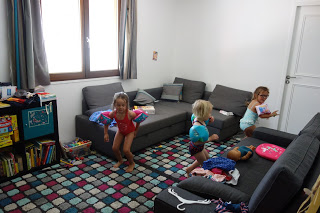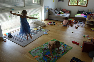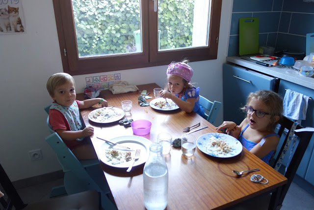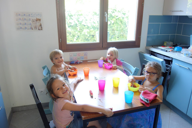 Aujourd’hui, nous étions en alerte rouge canicule, et l’école et la crèche des enfants était donc fermées (à partir de 12h, mais je les ai gardés toute la journée). Cela aurait dû être le dernier jour de crèche d’Émile, mais la météo en a décidé autrement ! Nous avons aussi accueillies Linette toute la journée, et Jeanne l’après-midi.