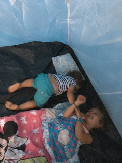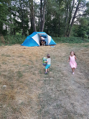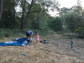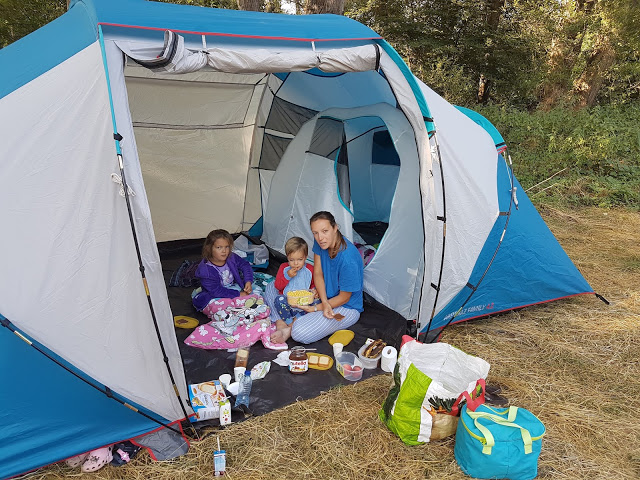 La soirée de camping a ravi les enfants, mais l’endormissement a été bien long, ils étaient excités et coquins comme jamais ! C’est le bruit du feu d’artifice d’Issoire vers 23h qui nous a fait sortir de la tente (on ne devinait que les fusées les plus hautes entre les arbres) qui a permis de leur changer les idées pour enfin parvenir à s’endormir…