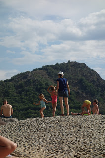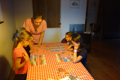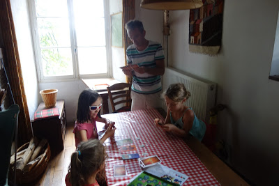 | Lucie mène le jeu pendant que les adultes mangent… |