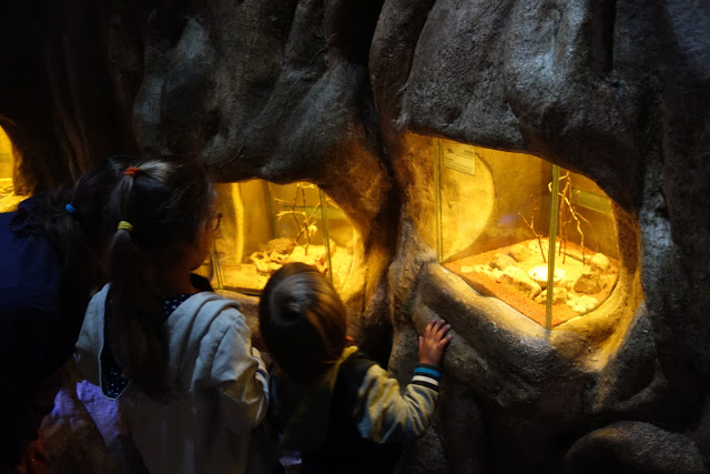 Nous avons ensuite vu de nombreux insectes, vivants (phasmes, mygales, fourmis, abeilles, papillons) et naturalisés (scarabées, sauterelles, papillons). Les zones sont variées bien pensées pour les enfants.