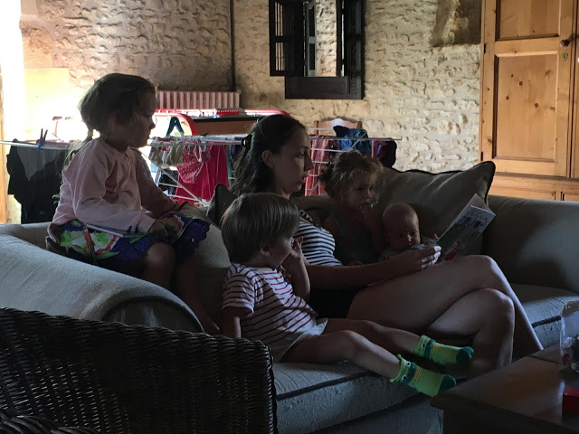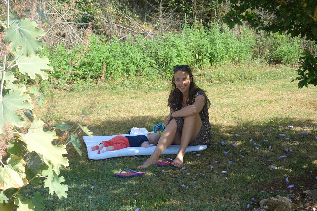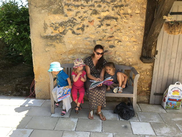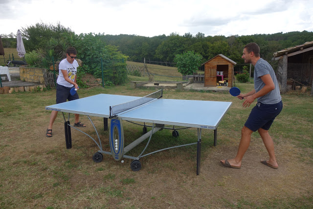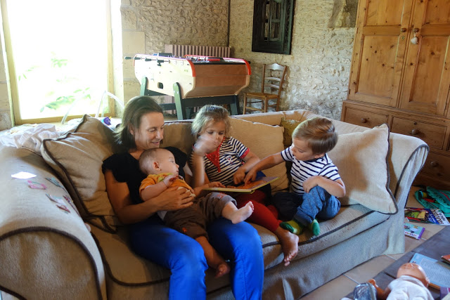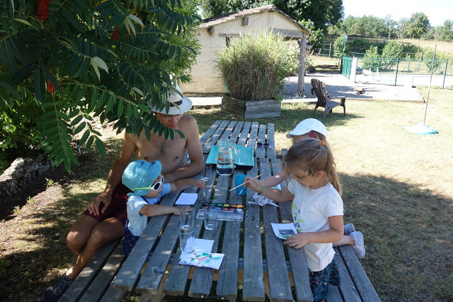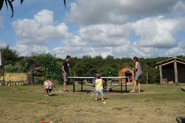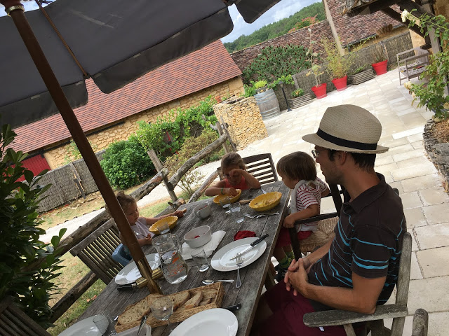 Nous avions donc loué une très grande maison à Léomard, près de Beaumont-du-Périgord. Il y avait 5 chambres, dont une pour Lucie, Ariane et Émile, une fine équipe 😉 et une belle terrasse sur laquelle nous avons pris la plupart des repas.