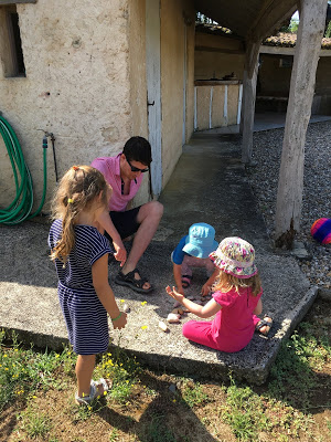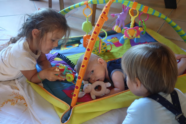 Lucie et Émile étaient ravis de jouer avec Ariane, et de pouponner Antonin et Eliott. Quel entraînement pour dans quelques mois ! Lucie m’a demandé à la fin du séjour si on pouvait maintenant trouver un bébé plus petit pour mieux s’entraîner 😉