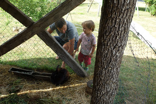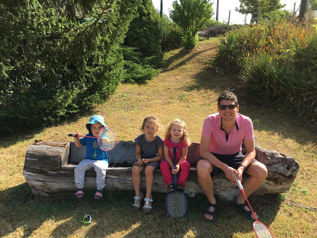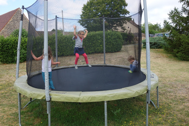 Il y avait aussi un très grand jardin, avec tout ce dont on peut rêver : piscine, trampoline, terrain de badminton, table de ping pong, terrain de molkky, petite maison, bac à sable, balançoire et même un vrai lapin – Haribo – dans un clapier, dont Émile était fan !! Le bonheur, pour les petits … et les grands !