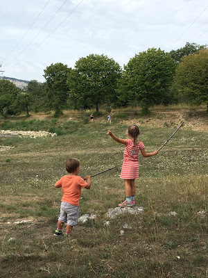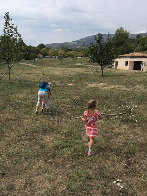 Ce midi, nous sommes allés pique niquer dans un pré à Gourdon. À 100m de la voiture, mais il a quand même fallu porter Émile… quel paresseux ! Peu prometteur pour le projet camping des jours à venir…