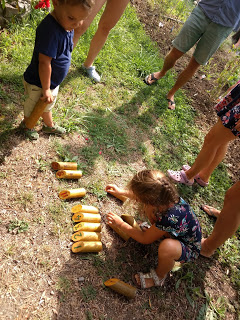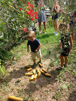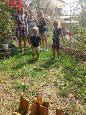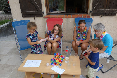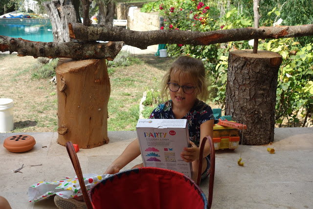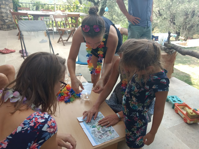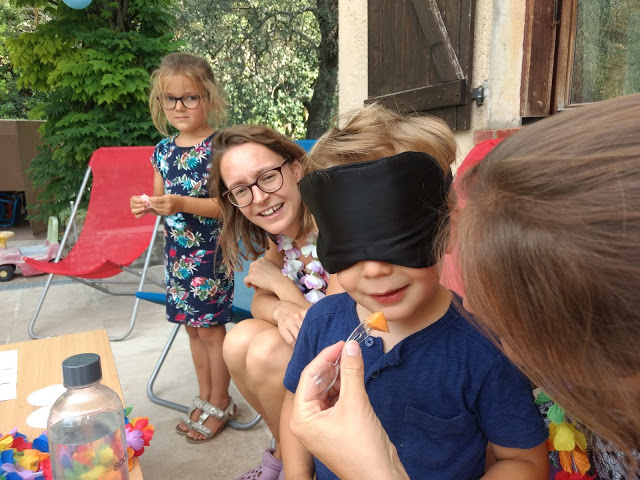 Dès leur retour des jeux, les choses sérieuses ont commencé avec la super chasse aux cadeaux préparée par les tatas ! Lucie a adoré, et Émile aussi. Bien pratique d’ailleurs ce petit frère qui n’a peur de rien, ni d’une dégustation à l’aveugle, ni d’un jeu de molkky 😉