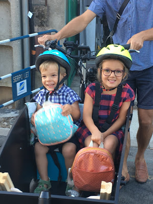 En tout cas, ils étaient de très bonne humeur ce matin. Nous y sommes allés en vélo cargo, avec Maman aux pédales.