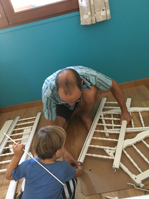 Le soir, Émile a aidé Thomas à monter les lits pour le bébé. Si si, il reste même une place pour le bébé 😉