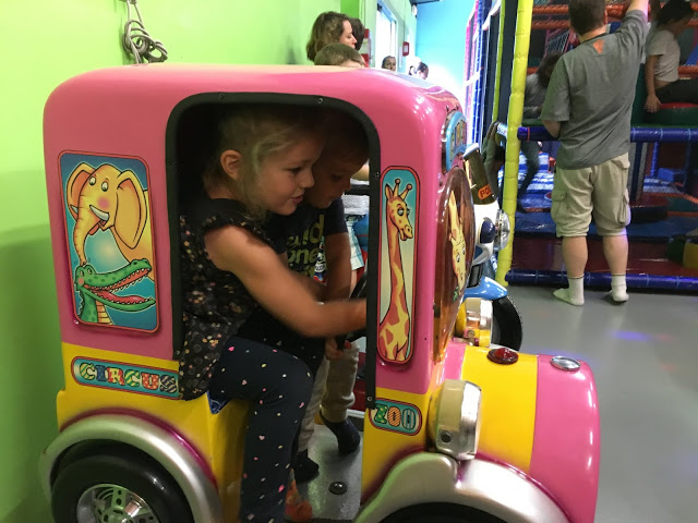 Le lendemain, nous avons emmené les enfants à Kids City, ils se sont beaucoup amusés. Lucie a retrouvé un copain de l’école, Solan, et Émile a emmené Grand-Maman visiter tout le parcours.