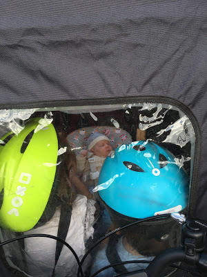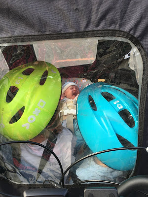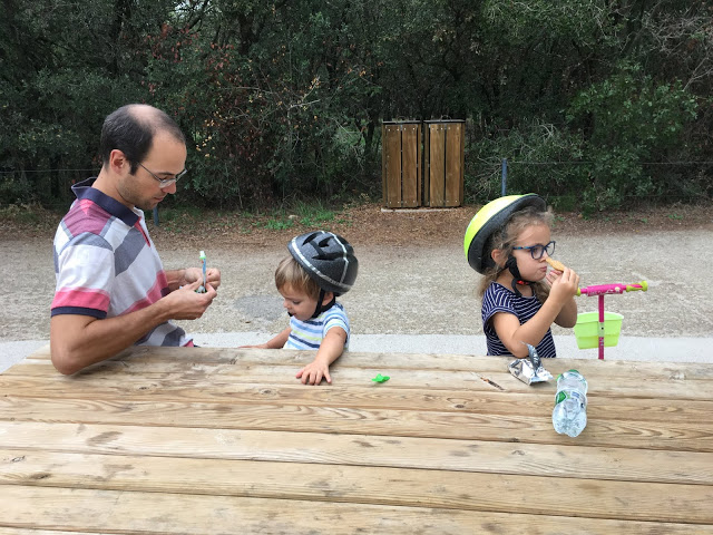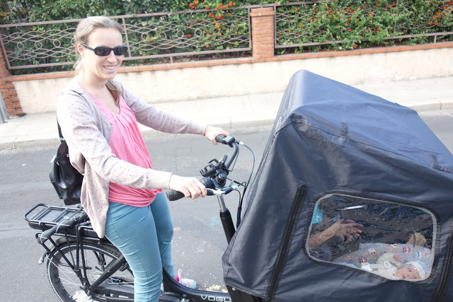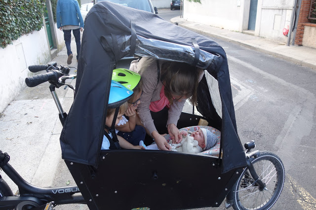 Dimanche, première balade en vélo cargo pour Odile. Un peu hésitante au début, elle s’est finalement endormie dedans. Pas si mal ! Nous avons été jusqu’aux jeux du parc Sainte Odile 😉 Et fait quelques belles photos de famille (sans Émile, puisqu’il refuse les photos …).