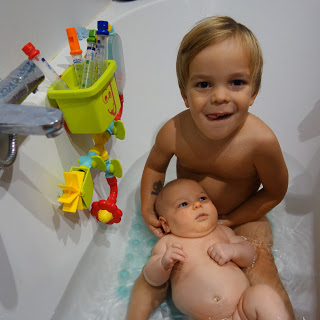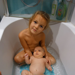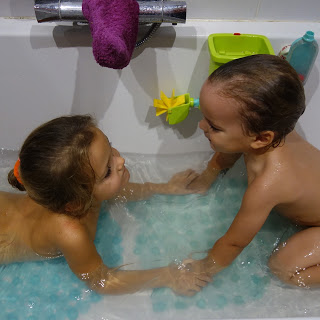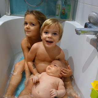 Ce soir, nous avons tenté le premier bain à 3. Et Odile a été ravie ! Les deux grands aussi bien sûr, mais nous n’avions aucun doute … Les premiers bains d’Odile n’ont jamais été de grands succès, mais ce soir, elle était beaucoup plus détendue (on aurait plutôt pensé le contraire !), et est restée bien plus longtemps que d’habitude. Nous n’hésiterons plus !