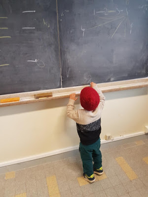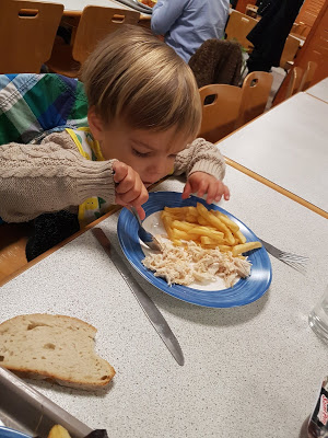 Pendant que j’allais à un rendez-vous médical avec Odile, Émile est allé déjeuner à la fac et visiter le bureau de Thomas. Il était ravi, et a bien sûr mangé des frites !