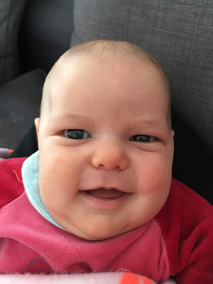 Ce mois ci, Odile a bien progressé dans ses sourires 🙂 🙂