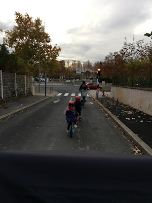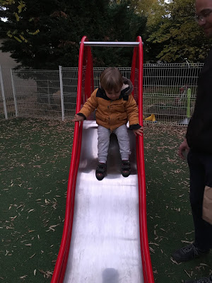 Nous sommes allés en vélo, avec Justine au goûter organisé à l’école maternelle cette après-midi. Émile y est comme un poisson dans l’eau !