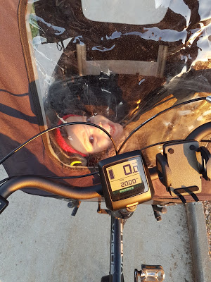 Pendant ce temps, Thomas est allé au cours de gym d’Émile. Et a franchi les 2000km avec notre vélo cargo !!