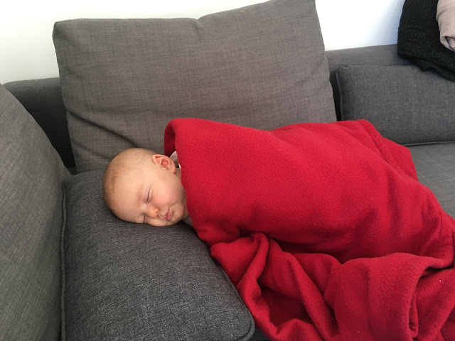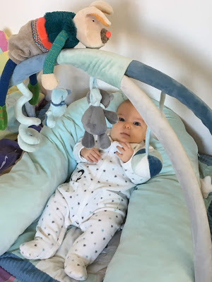 J’ai ensuite passé une journée tranquille avec Odile. Avec sa petite bronchiolite, elle a besoin d’avoir la tête un peu surélevée pour mieux dormir. En journée, j’essaie de la poser comme cela du coup :