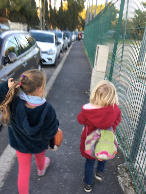 Puis comme tous les vendredis, je suis allée chercher Lucie à pied à l’école. Cette semaine nous avons ramenée Jeanne en plus.