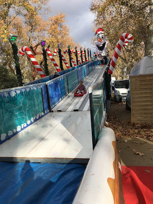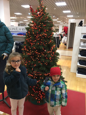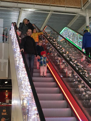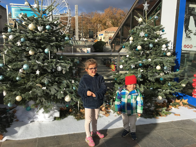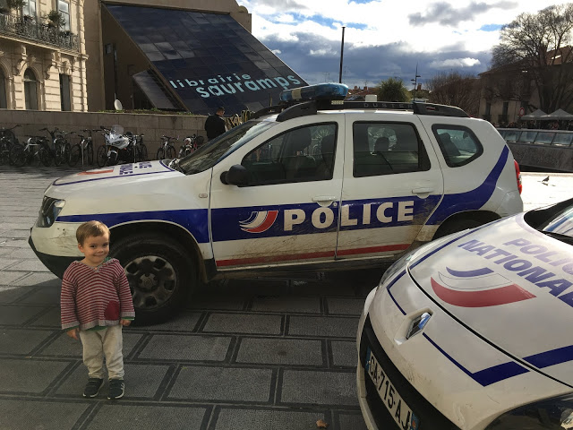 Petites courses en ville ce matin. Nous avons profité une dernière fois du marché de Noël, avec une descente de luge pour Émile. Mais aussi des escalators et sapins du centre commercial. Pour finir avec une magnifique voiture de police ! Tout est magique à Noël !