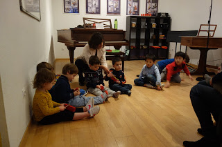 et au cours d’éveil musical d’Émile (exceptionnellement, c’est Thomas qui a assisté au cours de piano de Lucie pendant ce temps).