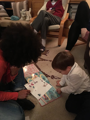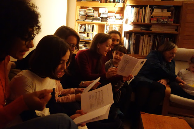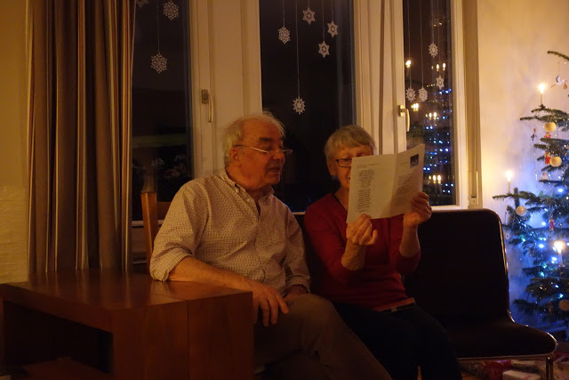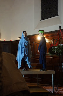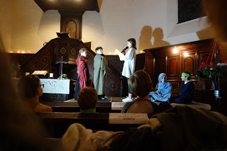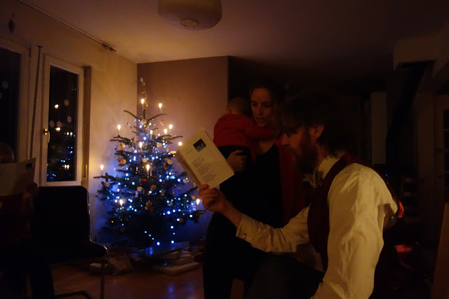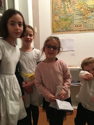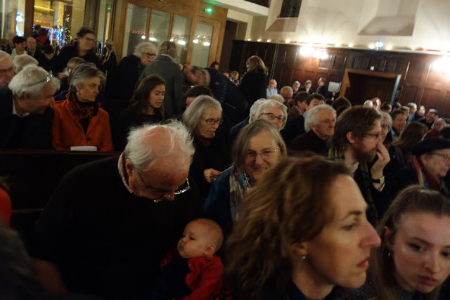 Culte à l’église de la Robertsau avec saynète où jouaient Manon et Oriane (pendant ce temps le Père Noël est passé déposer les cadeaux!), les enfants ont été super sages pendant tout le culte, et la saynète de l’ange Marcel était très amusante.