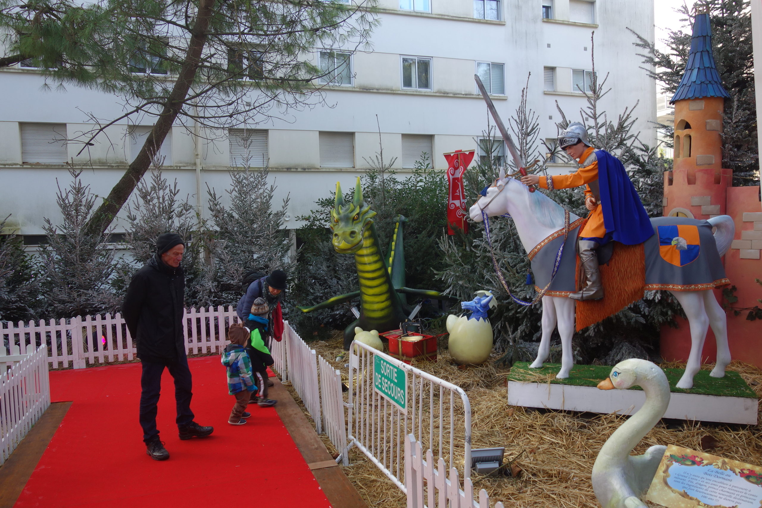 Comme l’année dernière, nous sommes allés faire un tour dans le jardin du Bois des Aulnes pour voir l’exposition Noël Magique. Cette année, le thème était Les Contes : Peter Pan, Blanche Neige, Alice ua Pays des Merveilles, La Belle au Bois Dormant…