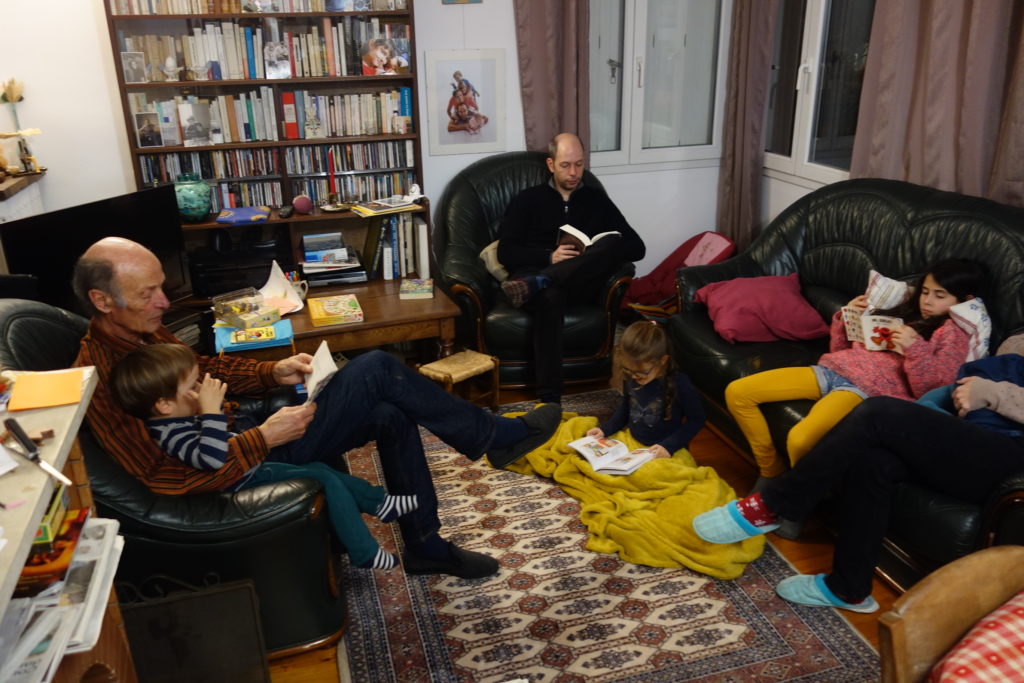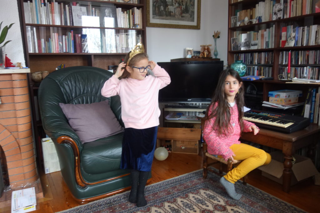 Pour mon anniversaire, en plus de la sortie piscine, j’ai eu droit à un concert piano/chant/danse de Lucie et Gali, je me suis régalée d’une délicieuse tarte tatin et d’un bon feu de cheminée !