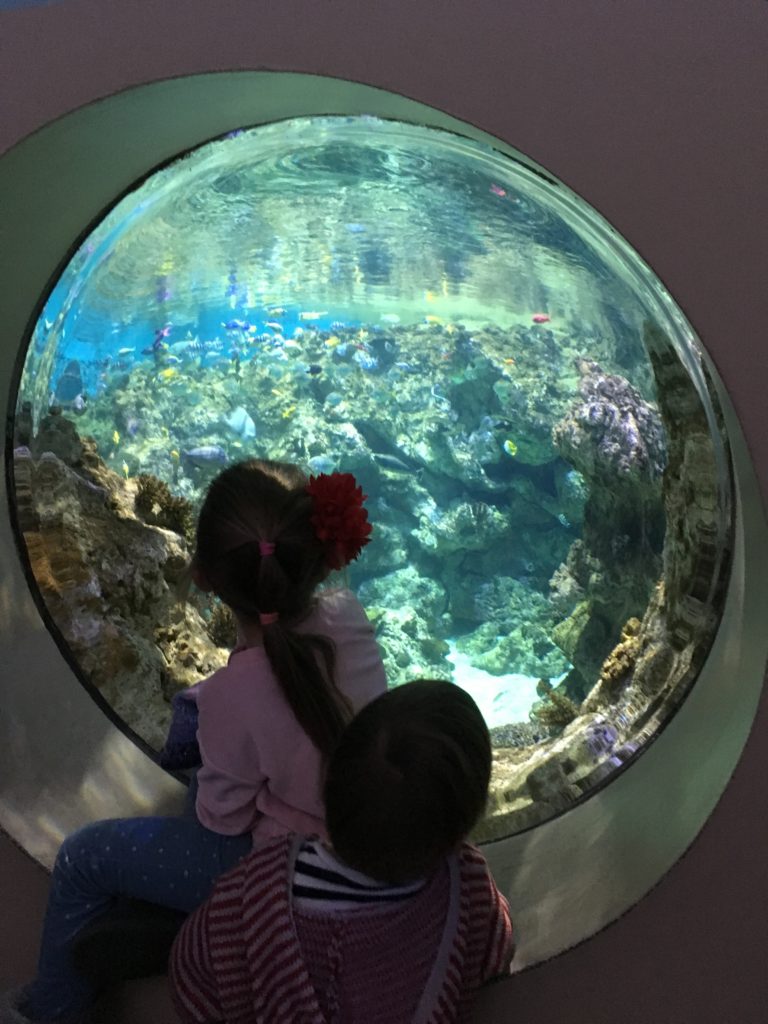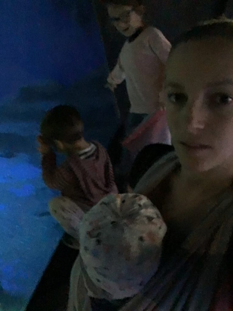 Dès que j’eus réussi à habiller les enfants, nous avons pu aller à l’aquarium. J’y vais maintenant en vélo cargo, et les trajets se passent toujours très bien ! Et nous avons passé un bon moment à l’aquarium. Odile a bien regardé, les poissons, les lumières. Lucie adore se faire prendre en photo ces temps cis, et Émile déteste toujours ça 😉