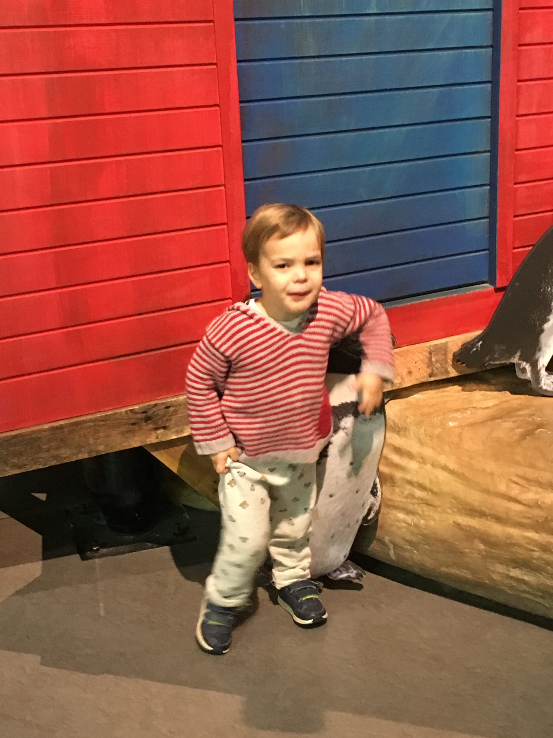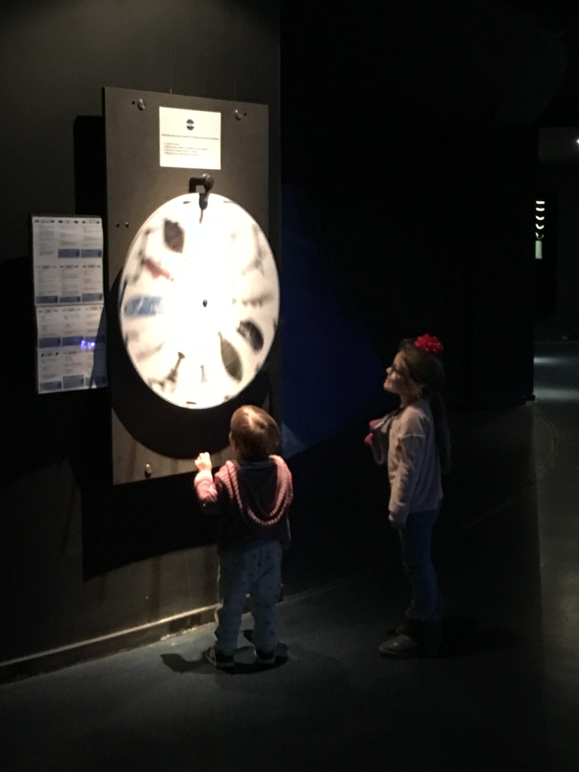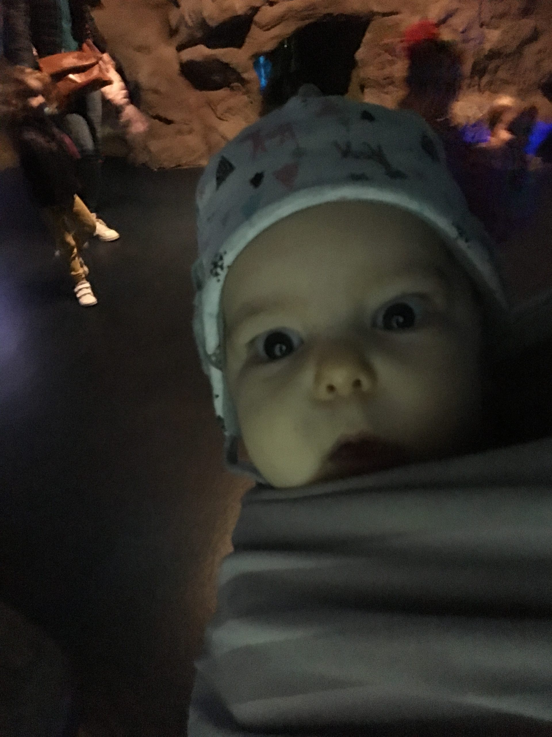 Dès que j’eus réussi à habiller les enfants, nous avons pu aller à l’aquarium. J’y vais maintenant en vélo cargo, et les trajets se passent toujours très bien ! Et nous avons passé un bon moment à l’aquarium. Odile a bien regardé, les poissons, les lumières. Lucie adore se faire prendre en photo ces temps cis, et Émile déteste toujours ça 😉