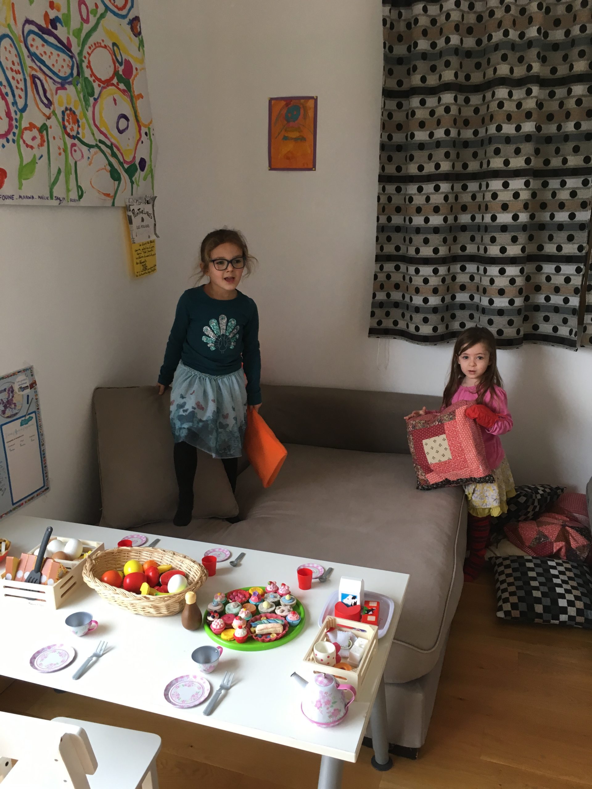 Les filles (et Émile !) ont joué à la dinette, se sont déguisées, ont dansé, et ont fait quelques aquabeads.