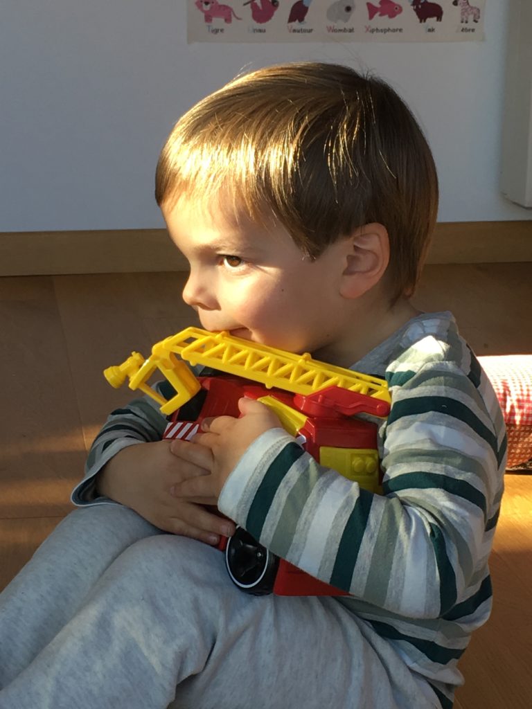 Émile a reçu un magnifique camion de pompier télécommandé pour son anniversaire… merci les tatas !!