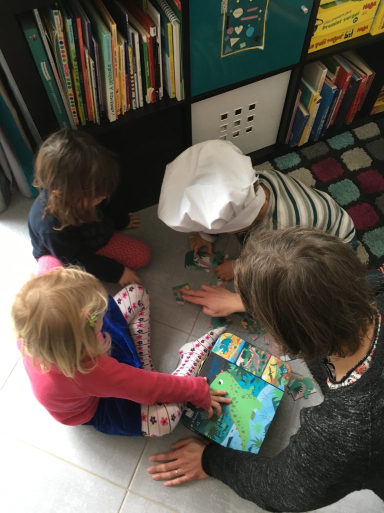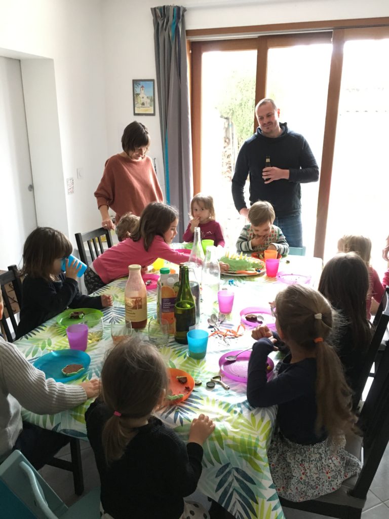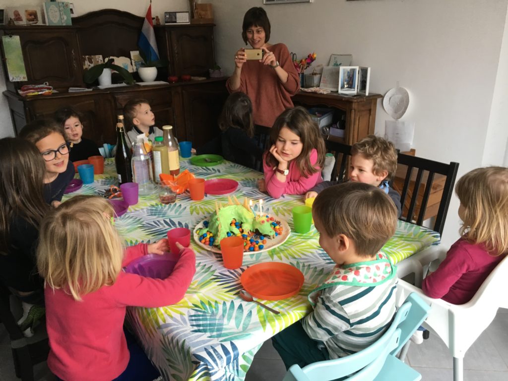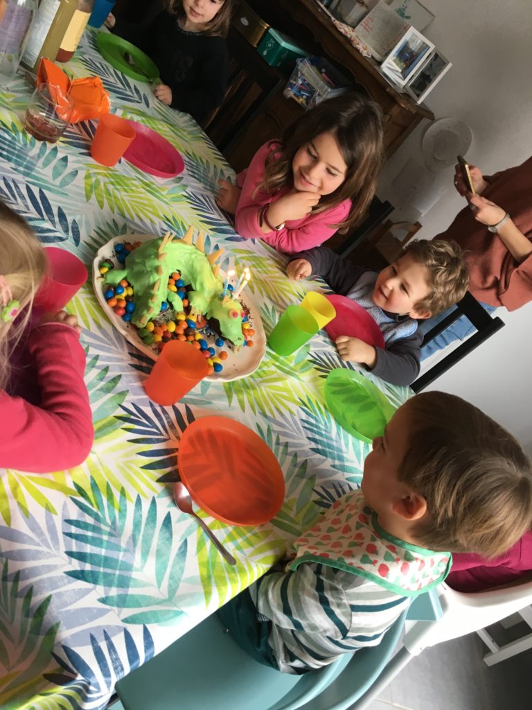 Émile était en fait très rétissant, il m’a même dit “Non merci maman” quelques jours avant quand je lui ai rappelé la fête à venir. Mais au final il était content de voir ses copains, ravi du gâteau que son papa lui avait confectionné, et il a été bien gâté !
