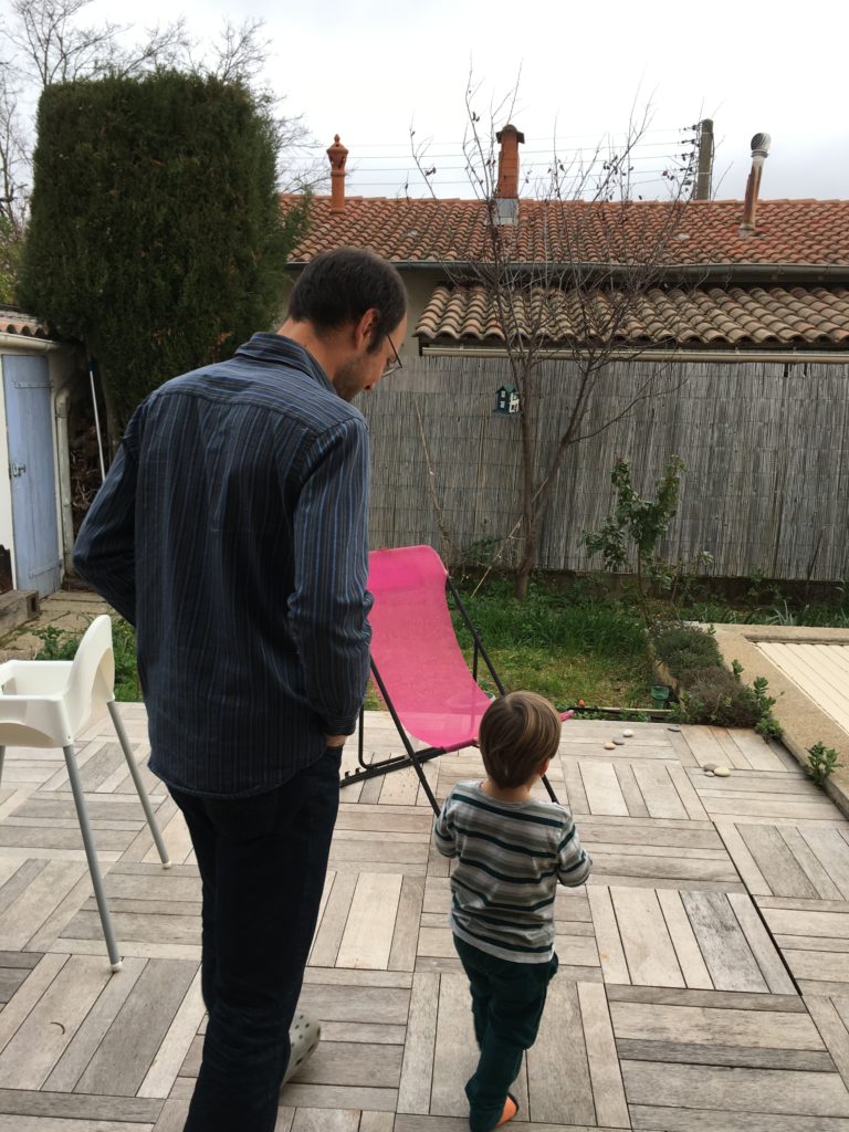 Aujourd’hui, pour le goûter, nous avons invité les copains d’Émile à venir fêter son anniversaire. Il y a dans le quartier 5 enfants de son âge qui rentreront à l’école en septembre avec lui, alors ses invités étaient tout trouvés ! Nina et Romy, les petites soeurs de Linette (qui sont à la crèche avec lui); Arthur, le petit frère de Jeanne; Maxime, le petit frère de Justine, et Lena la petite soeur de Yoann. Bien sûr, les grands, tous de l’âge de Lucie, étaient aussi de la partie, et même que les parents. Au total 12 enfants, et 8 adultes. Dommage que le temps ait été maussade, la semaine dernière il avait fait si beau…