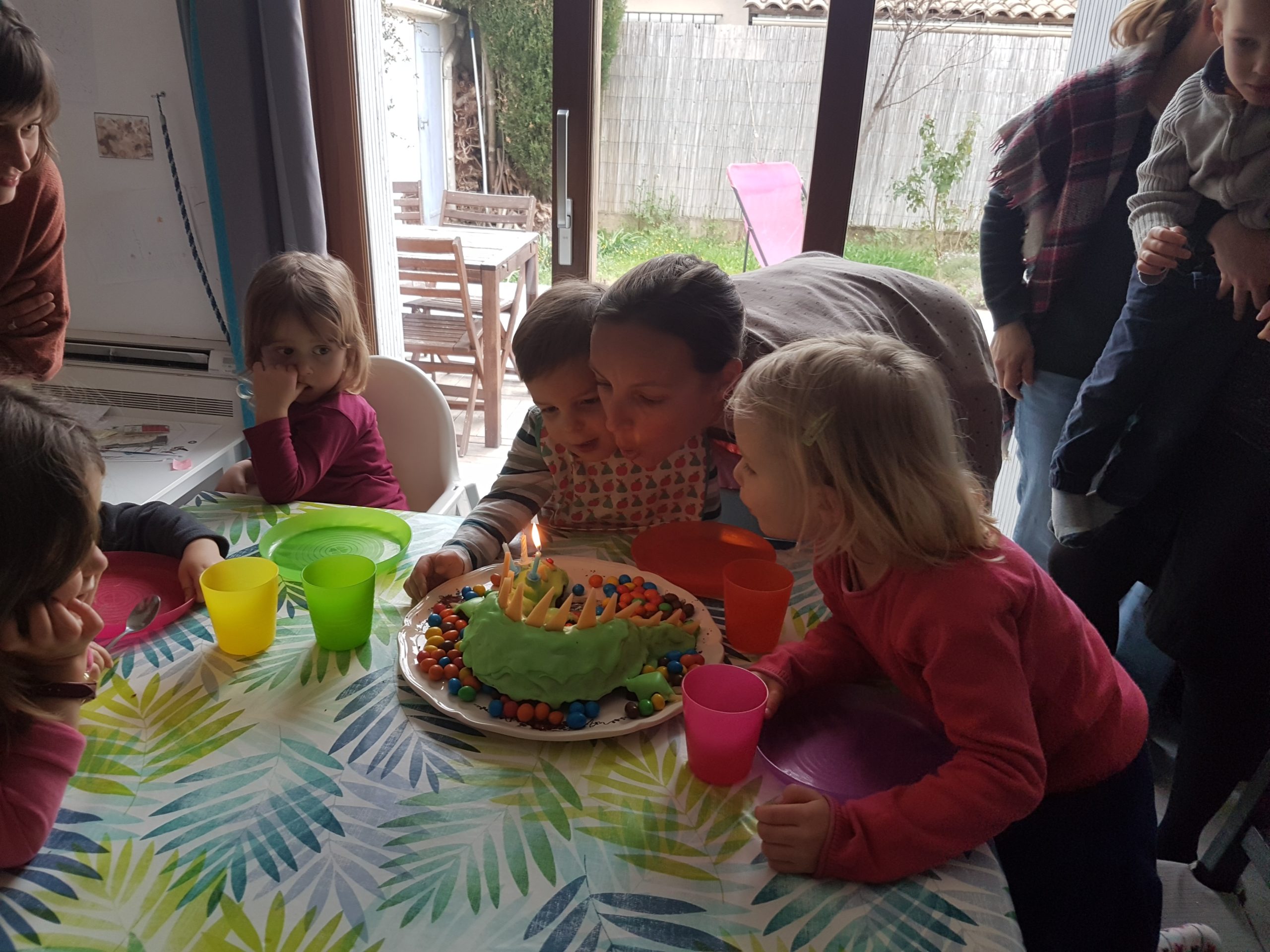 Émile était en fait très rétissant, il m’a même dit “Non merci maman” quelques jours avant quand je lui ai rappelé la fête à venir. Mais au final il était content de voir ses copains, ravi du gâteau que son papa lui avait confectionné, et il a été bien gâté !