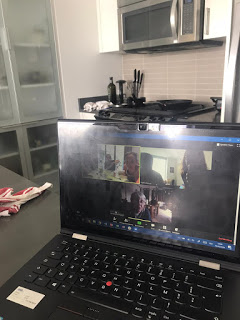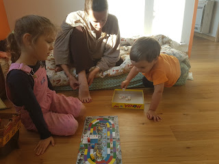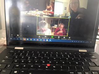 Puis après avoir couchés les deux petits, Lucie, Thomas et moi avons joué à Just One sur Zoom avec Grand-papa, Grand-maman et Tata Agathe ! Une belle soirée !
