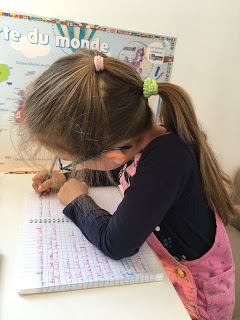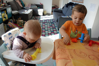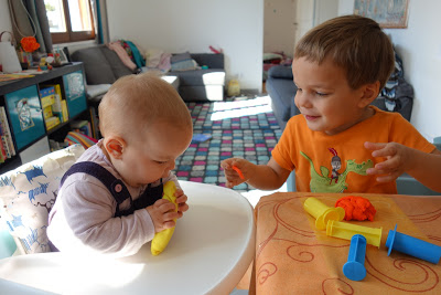 Pendant les devoirs de Lucie, Thomas et les petits ont fait de la pâte à modeler, puis sont allés jouer dehors.
