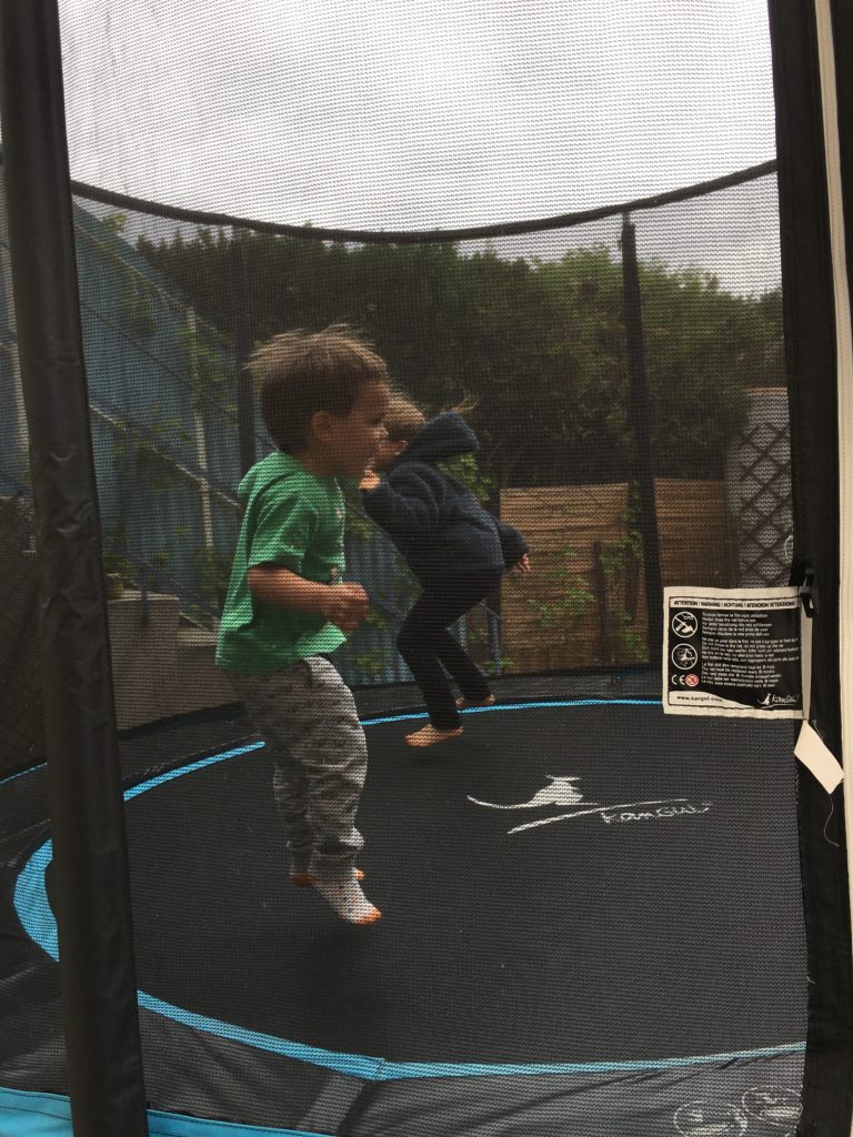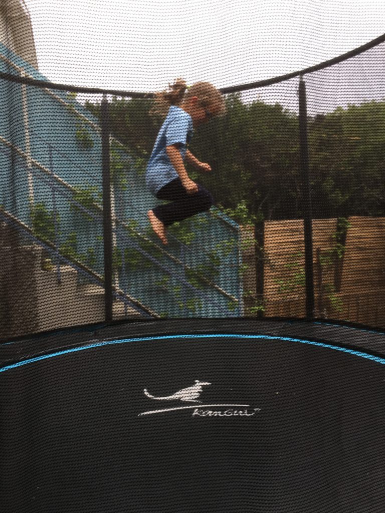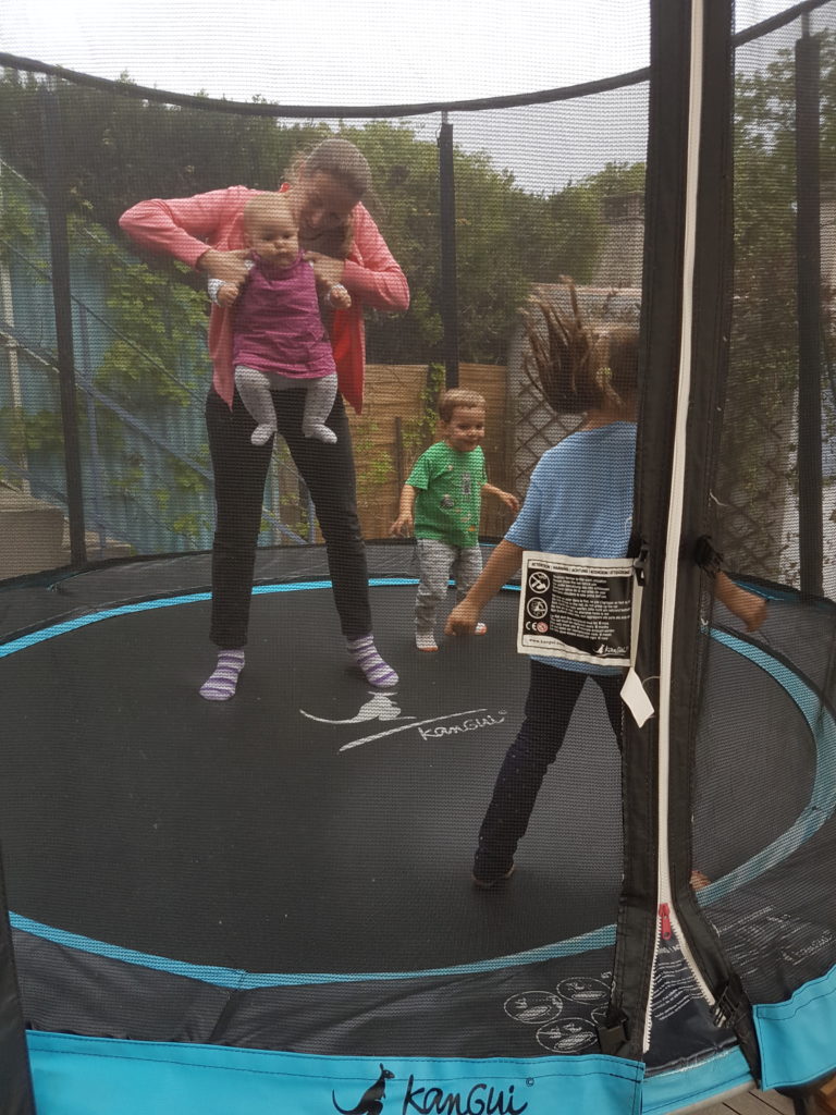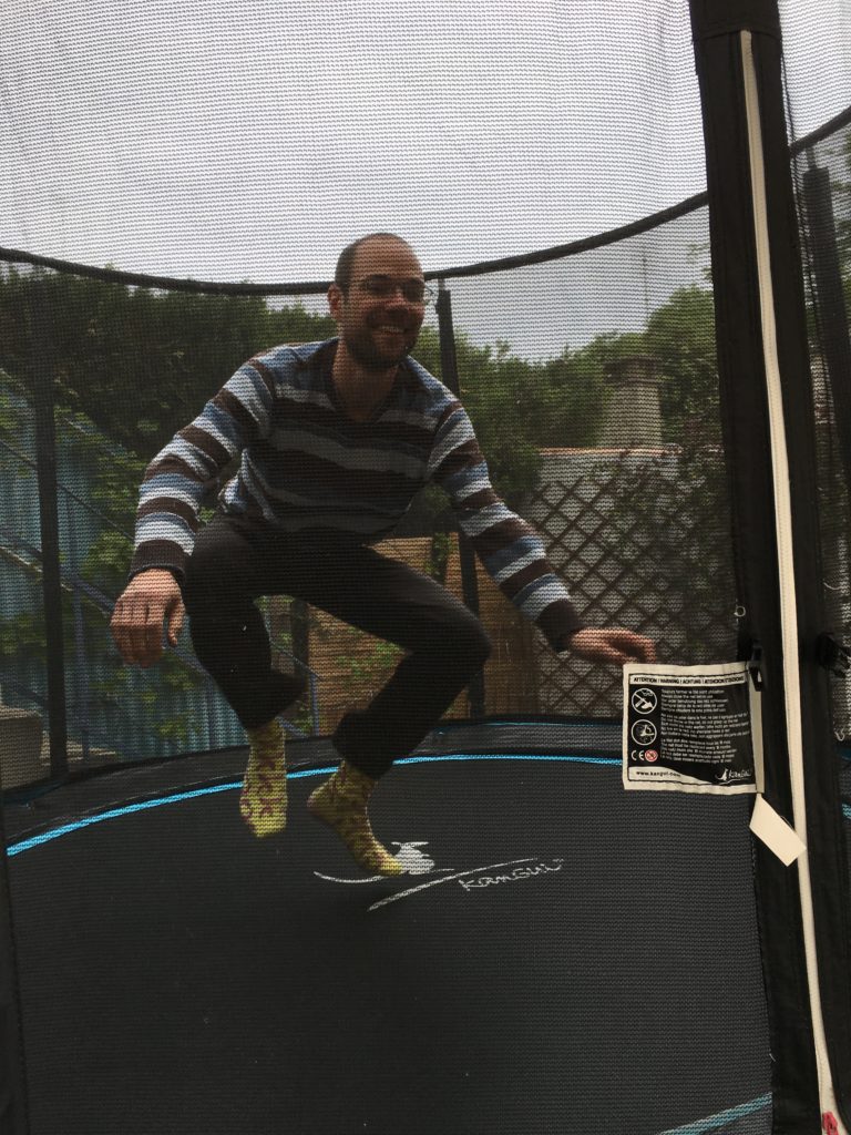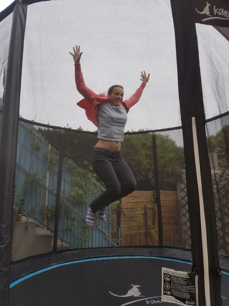 Nous avons ensuite organisé un concours de saut sur trampoline. Le but était de sauter le plus haut possible, nous avons décerné la médaille à … Lucie !