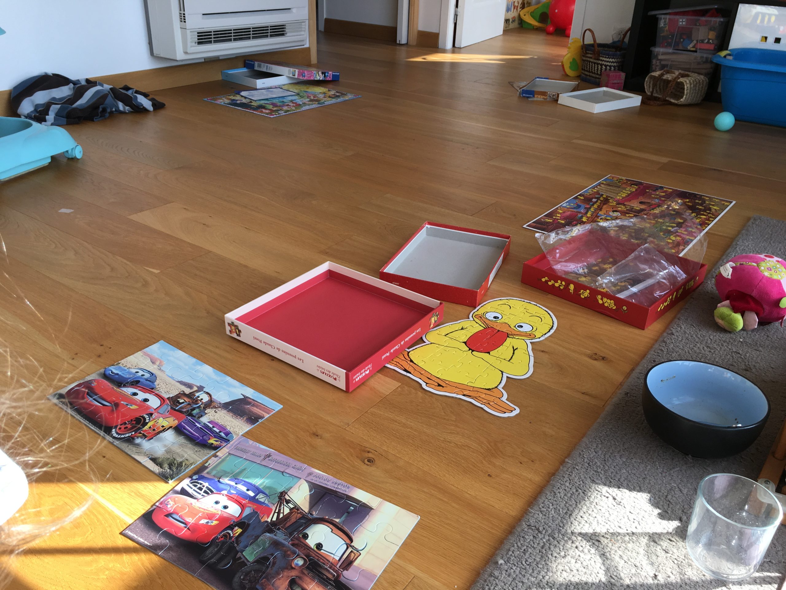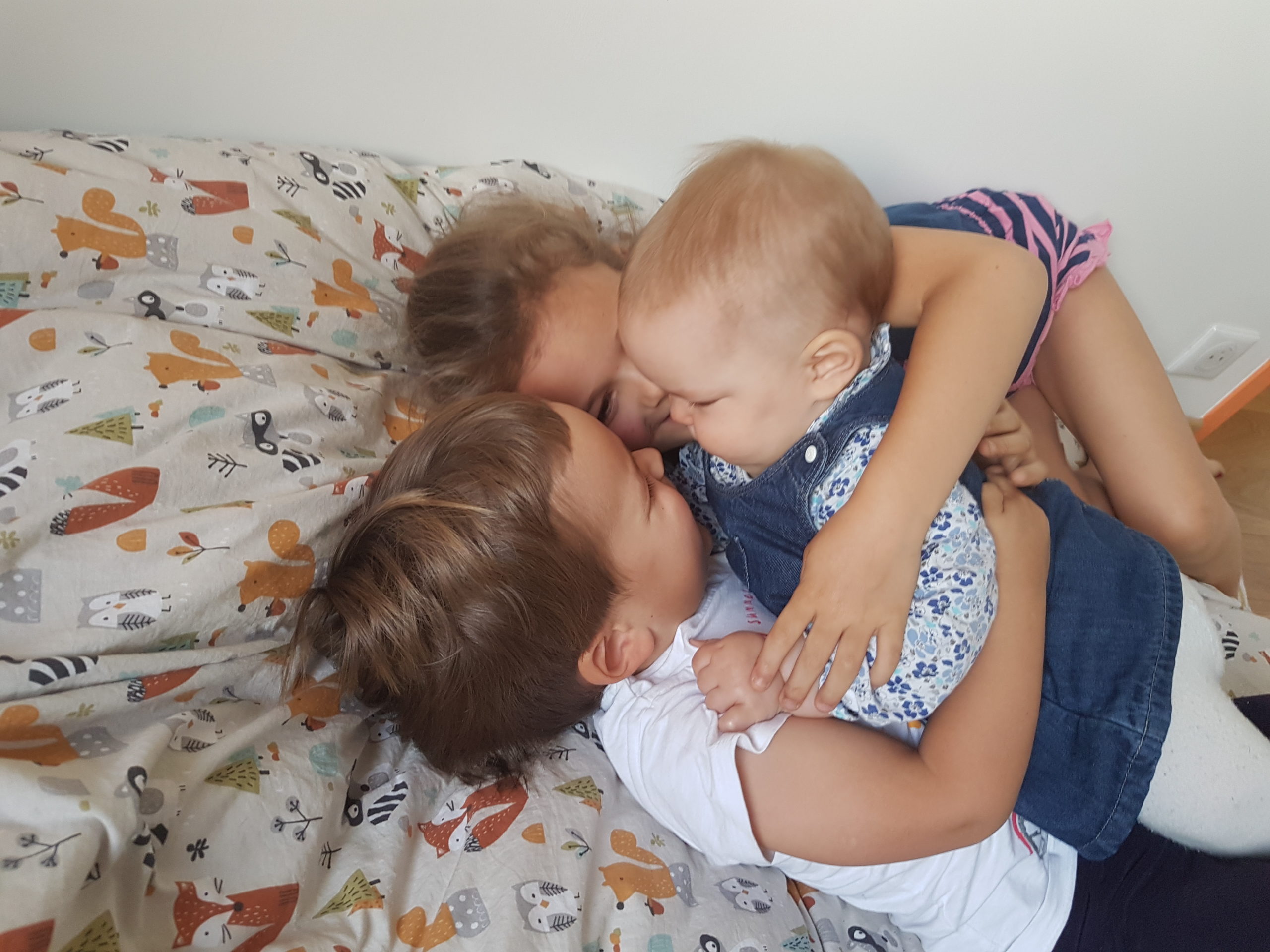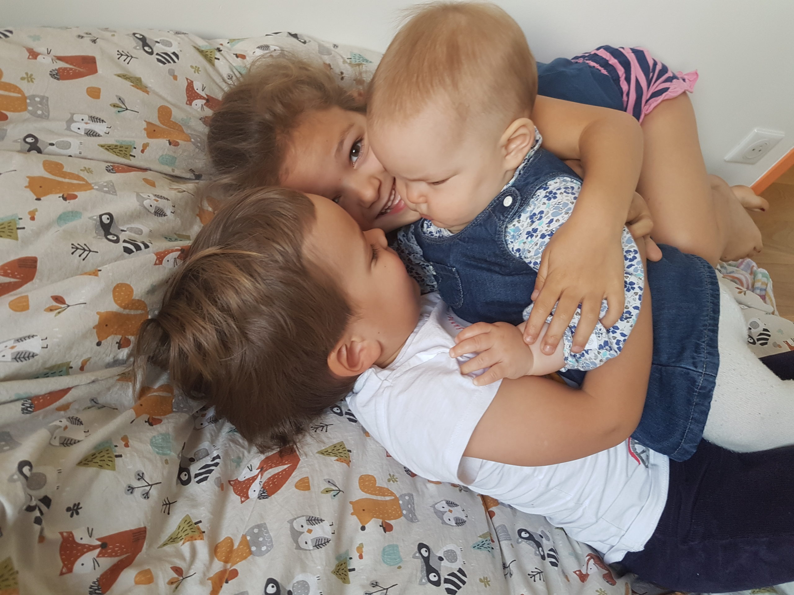 Ce matin, les enfants se sont réveillés d’humeur caline 😉 Nous les avons trouvés tous les deux dans le même lit, en train de lire des livres. Puis ils ont gentiment joué ensemble, puzzles, memory, même un peu de devoirs.