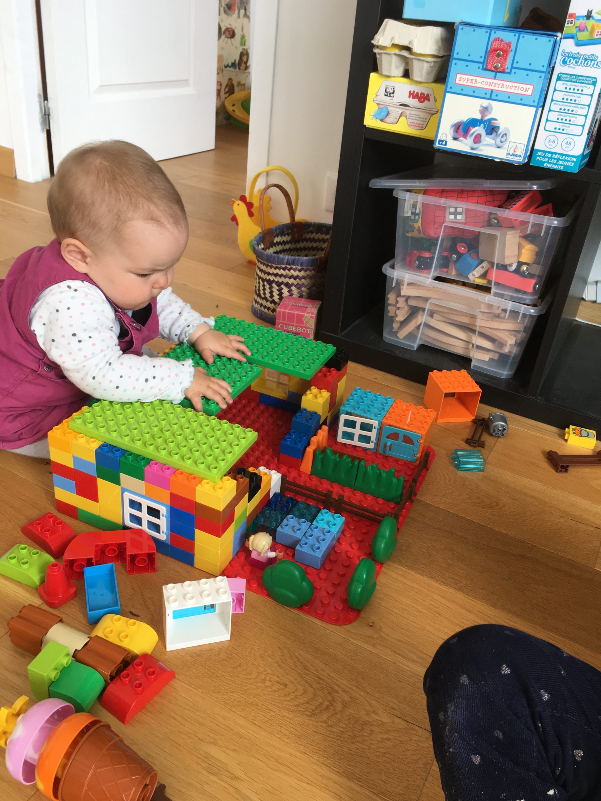 Après la sieste, nous avons fait une longue séance de duplos. Tout le monde a participé !