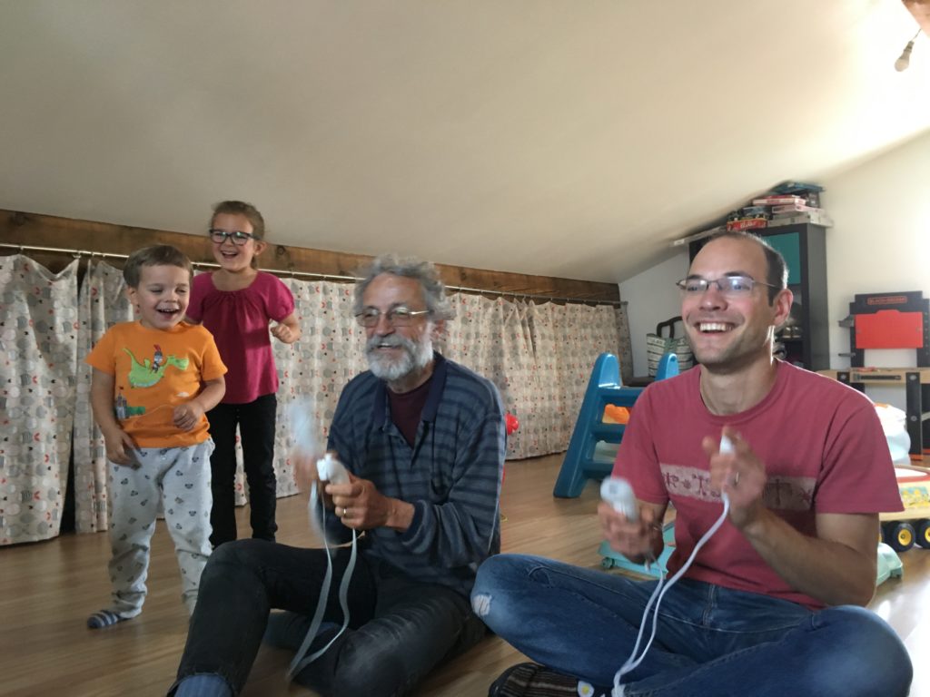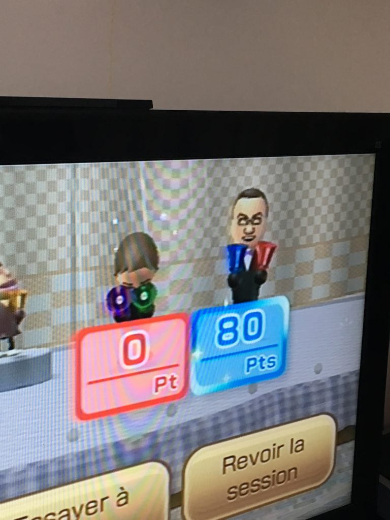 Et aussi le jeu Wii Music, avec ses concerts de clochettes. Grand-Papa (tout comme moi d’ailleurs) a eu moins de points de Thomas, il était très vexé (et moi aussi !) ! Mais on a tous bien rigolé.